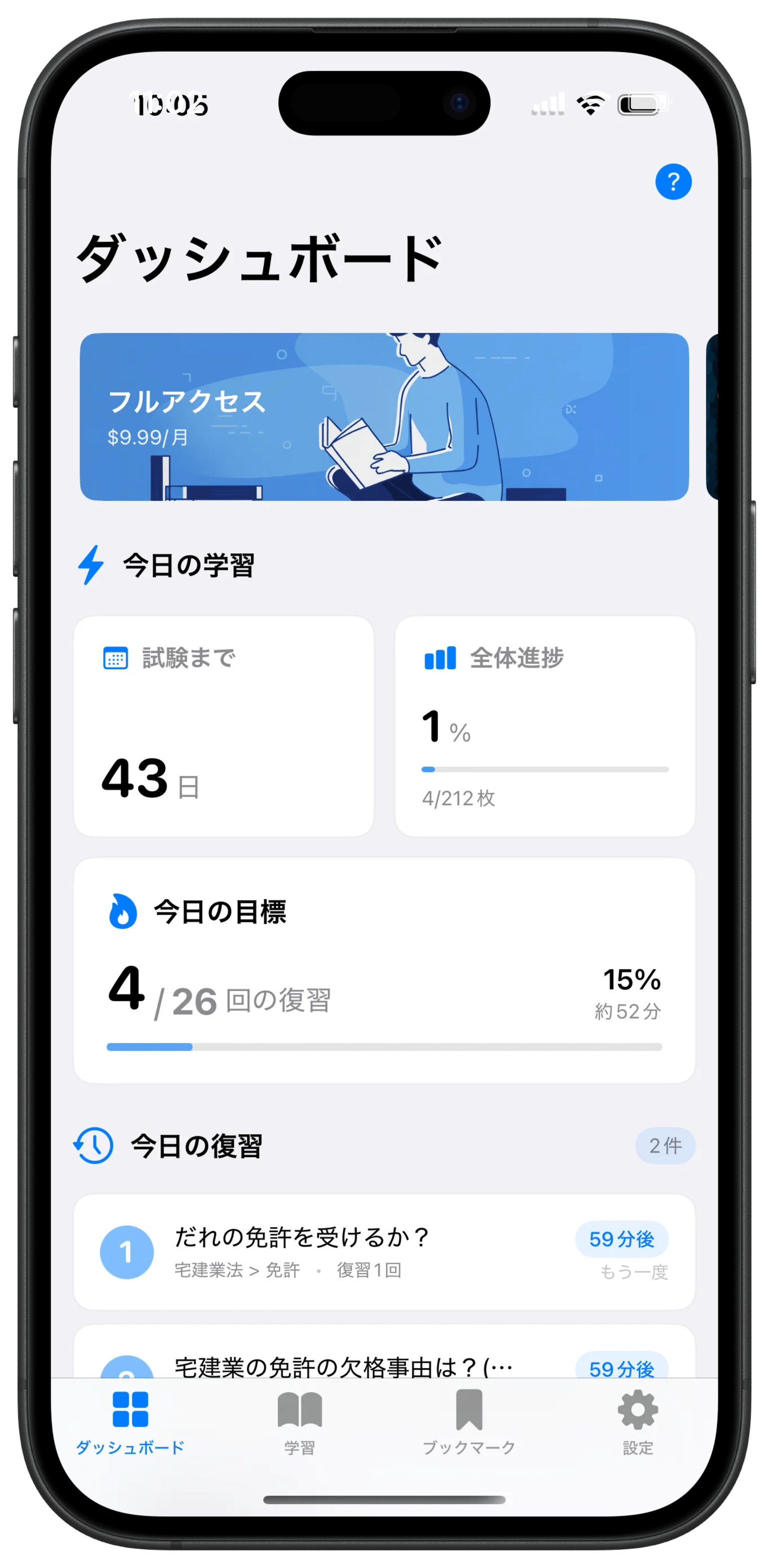 約2分カード × 忘却曲線 × 4段階評価で、効率的に定着させます。
